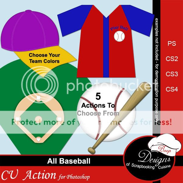 Batter Up!!!! There are 5 baseball item within this one action. Do you have a favorite team color? Well on the jersey and cap you can choose your favorite teams colors. Use these versatile actions over and over again year after year. As always, this action is very user friendly… just load and play! The only thing you need to do is to decide which baseball item you want use...